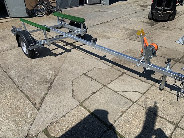Eladó a képeken látható 4600 mm méretű csónakig alkalmas könnyű, de stabil, horganyzott kivitelű, 1 tengelyes, fék nélküli, torziós, párnafás kivitelű utánfutó. LED (vízálló) lámpákkal! Az utánfutó KNOTT alkatrészekkel van szerelve.