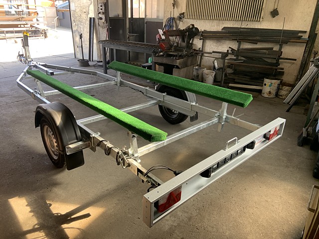 Eladó a képeken látható 5200-6600 mm méretű csónakig alkalmas könnyű, de stabil, horganyzott kivitelű, 1 tengelyes, fék nélküli, torziós, párnafás kivitelű utánfutó. Az utánfutó KNOTT alkatrészekkel van szerelve. Kérhető kihúzható/levehető lámpatartóval, illetve LED (vízálló) lámpákkal is!