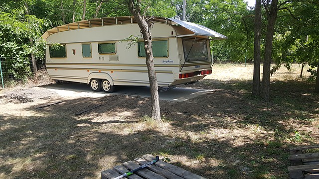 Eladó egy Tabbert Baronesse típusú két tengelyes lakókocsi. Beépített konyha gáztűzhely, gázkandalló, hűtő fűtő klíma, beépített wc vezetékes vízre és csatornára köthető. 220 voltos csatlakozási lehetőség kialakított. Nem dohányzó, beázás mentes. Egyedilg gyártott stabil plussz tetővel rendelkezik. Forgalomból végleg kivont, csak telepítésre.