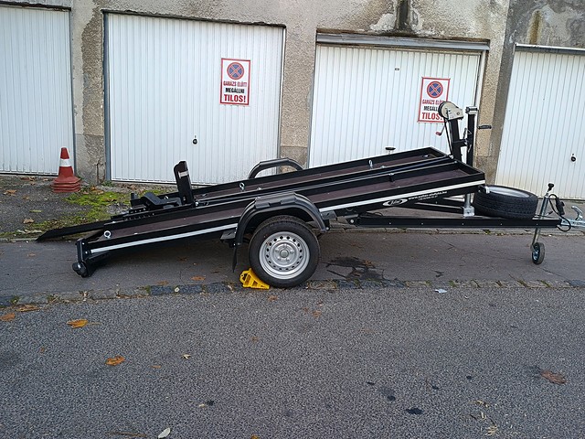 Az utánfutó a földig teljesen leengedhető, manuális csörlővel, a motor sínen felhúzható, így erőfeszítés nélkül lehet feltenni a motort a rakfelületre.