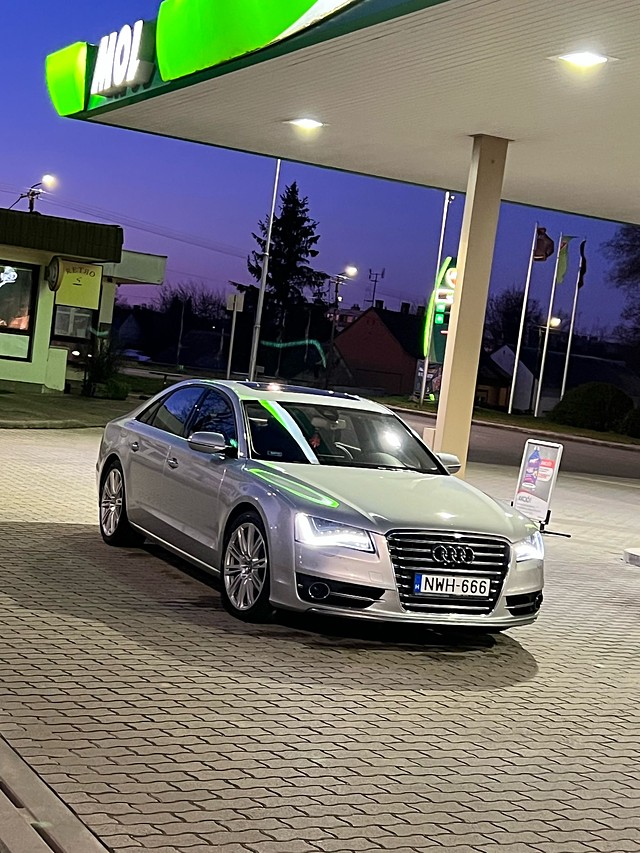 Eladó egy nagyon megkimélt garantált kilóméters Audi A8 4.2 tdi Rengeteg extrával! Éjjellátó,Led Mátrix,Bose hangrendszer,360 fokos kamera,Alcantara tetőkárpit,Solar tető,állóhelyzeti klima,Távirányitós állófütés,full memoriás üllés,Lábbal nyitható csomagtér,ajtó szervó,kulcs nélküli nyitás zárás,stb..Amit tudni kell róla nagyon keveset használt végig garázsban tartott 2021-óta 6500 kilómétert mentünk vele. Szervizek elvégezve! Összeskulcs,magánszemélytől eladó.