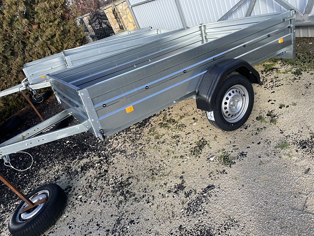 Eladó a képeken látható 2940x1440x355 mm méretű, könnyű, de stabil, horganyzott kivitelű, 1 tengelyes, fék nélküli, torziós utánfutó. Össztömege 350 kg és 750 kg között 50 kg-os léptekben papírozható, kivéve 700 kg. Az utánfutó KNOTT alkatrészekkel van szerelve.