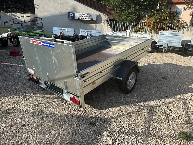 Eladó a képeken látható 2440x1250x355 mm méretű, könnyű, de stabil, horganyzott kivitelű, 1 tengelyes, fék nélküli, torziós utánfutó, billenős kivitelben. Össztömege 350 kg és 750 kg között 50 kg-os léptekben papírozható, kivéve 700 kg. Az utánfutó KNOTT alkatrészekkel van szerelve.