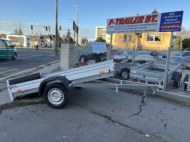 Eladó a képeken látható 2450x1450x150 mm méretű, könnyű, de stabil, horganyzott kivitelű, 1 tengelyes, fék nélküli, torziós, billenős kivitelű utánfutó. Össztömege 350 kg és 750 kg között 50 kg-os léptekben papírozható, kivéve 700 kg. Az utánfutó KNOTT alkatrészekkel van szerelve.
