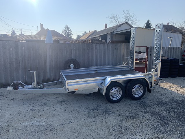 Eladó a képeken látható 3000x1560x200 mm méretű, stabil, strapabíró horganyzott kivitelű, 2 tengelyes, fékezett, torziós, gépszállító utánfutó. Össztömege 800 kg és 2700 kg között 100 kg-os léptekben papírozható. Az utánfutó KNOTT alkatrészekkel van szerelve.